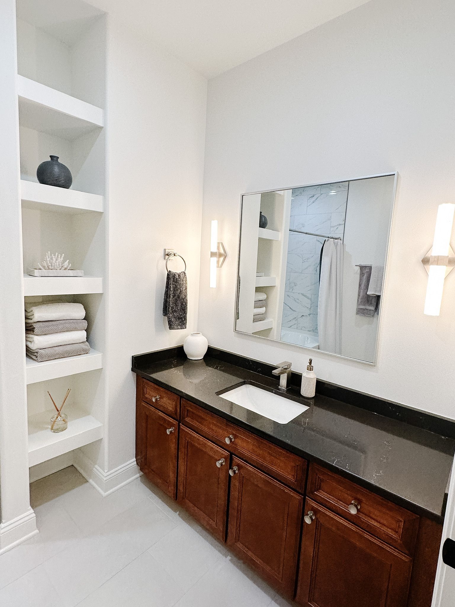 The Alvin Project started as a kitchen and primary bathroom update. The project continued on to include an office and three additional bath updates, as well as living room, dining room, sunroom, and family room decor. The majority of the materials, colors, and selections have been made by Inspired Design.